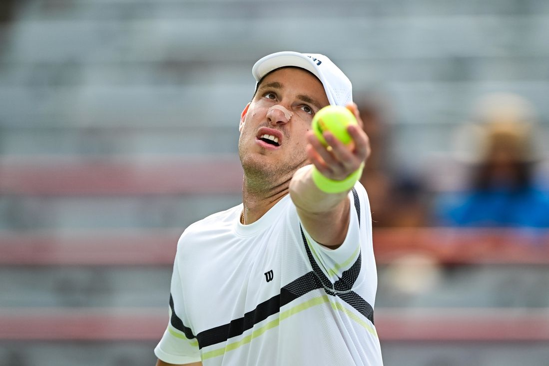 In other matches, eighth seed Marcos Giron celebrated his 100th ATP Tour win, losing only two points on his first serve against Botic van de Zandschulp of the Netherlands, winning 6-4, 6-1.