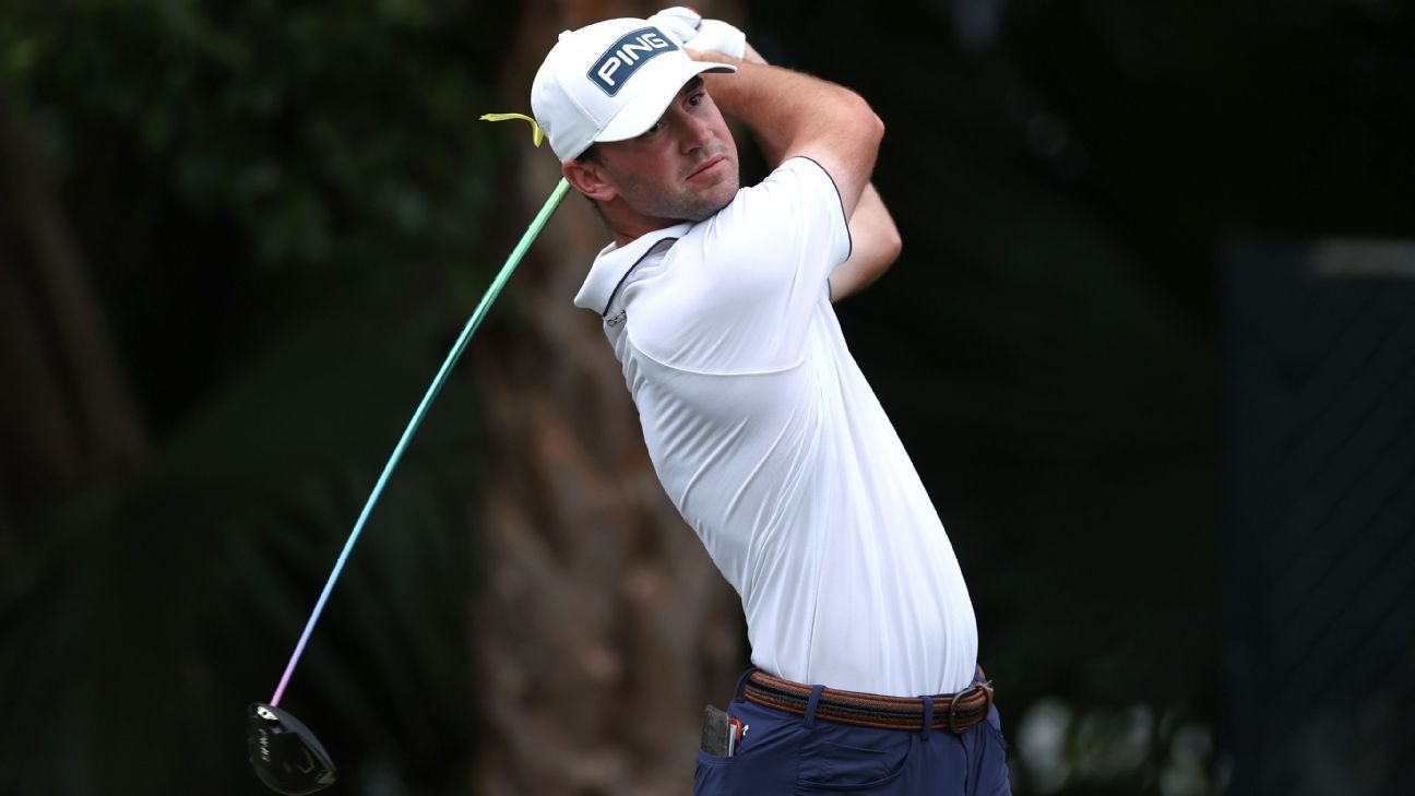 Jake Knapp, a PGA Tour rookie who won the Mexico Open at Vidanta last week, is third. Knapp is 5 under through 15 holes.