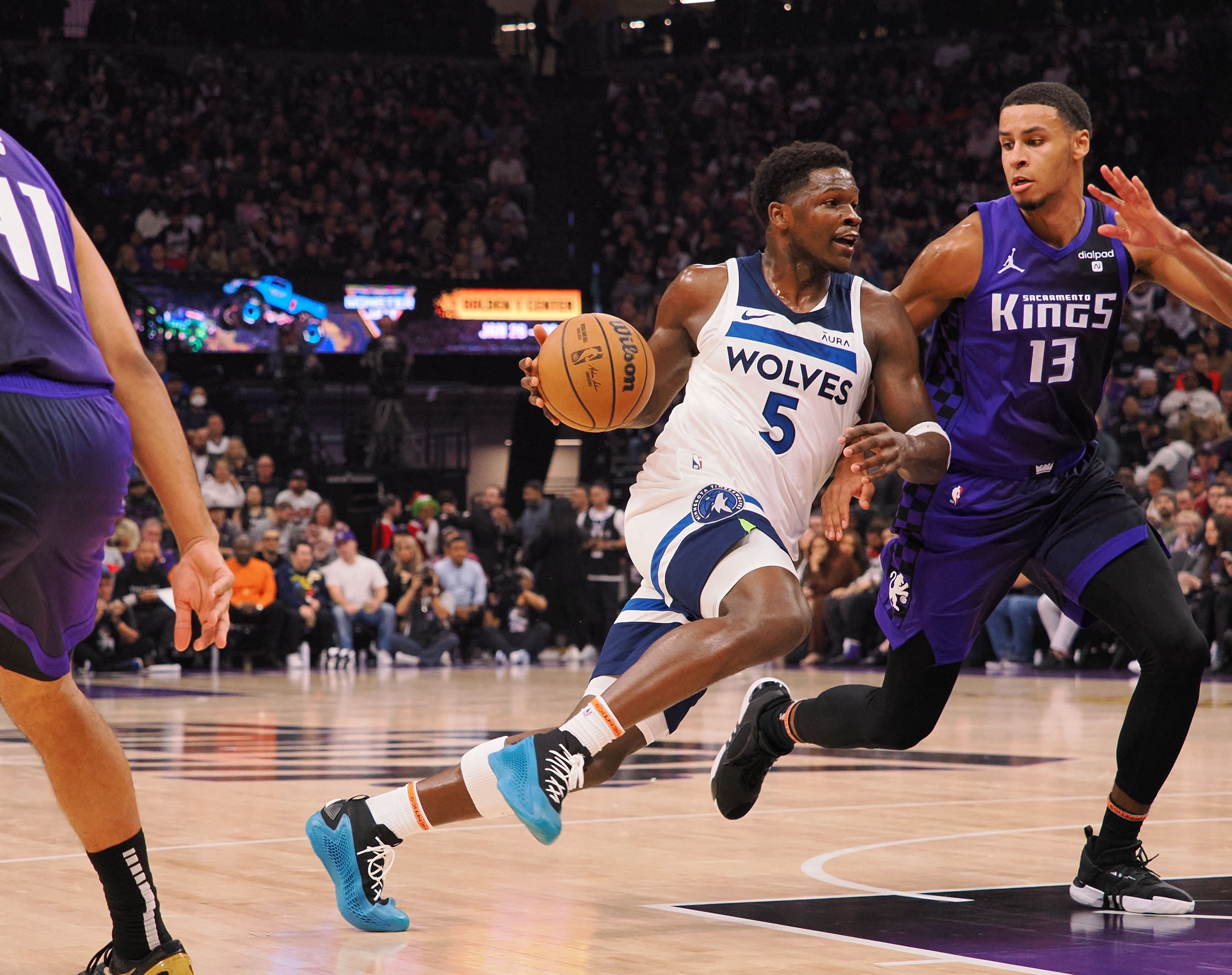 Anthony Edwards secured the victory for the Timberwolves by converting two free throws with just 2.4 seconds left, leading to a 117-115 defeat of the Kings in Sacramento's season opener on Thursday night.