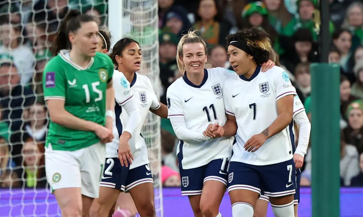 England secured a 2-0 victory over Ireland in Dublin during the Women's Euro qualifiers on Tuesday, thanks to goals scored by Lauren James and Alex Greenwood. Despite Ireland's determined effort until the end, France maintains their lead in League A Group 3 with a 1-0 win over Sweden.