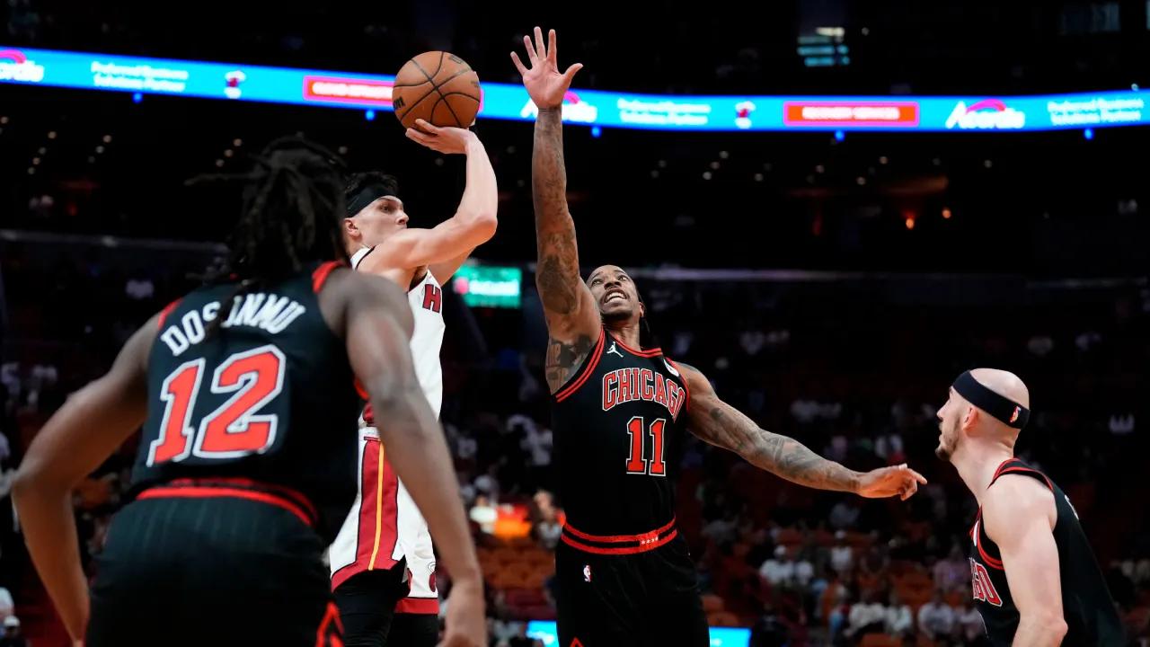 DeRozan's three-pointer gave Chicago an early 11-6 lead before Miami scored 19 consecutive points. Haywood Highsmith scored the final basket of the spurt, giving the Heat a 25-11 lead with 4:52 remaining in the first quarter.