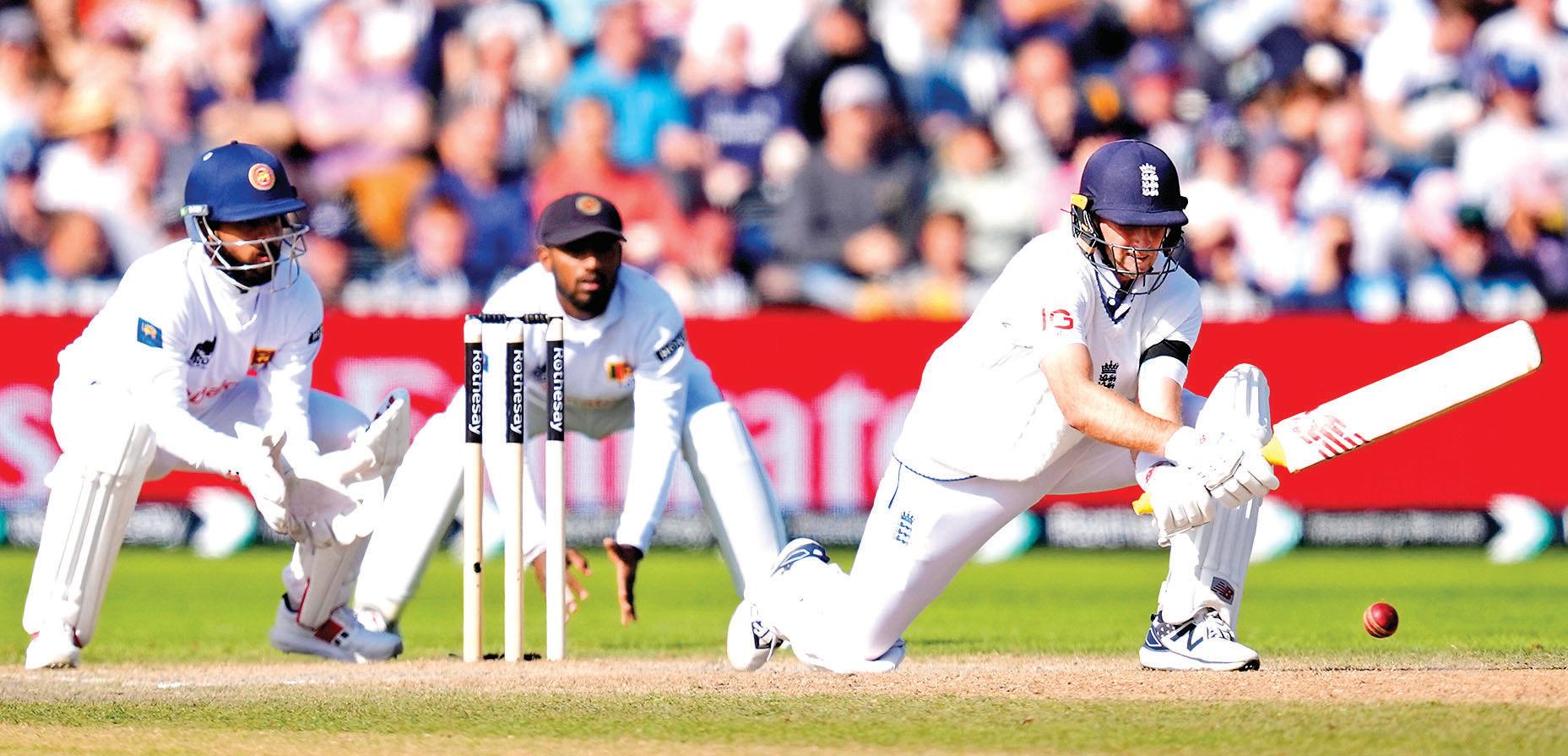 Smith, who had scored his maiden Test century in the first innings, exhibited similar composure as Root, with England going an hour without hitting a boundary, regaining control before Smith was bowled by Asitha Fernando for 39 runs.