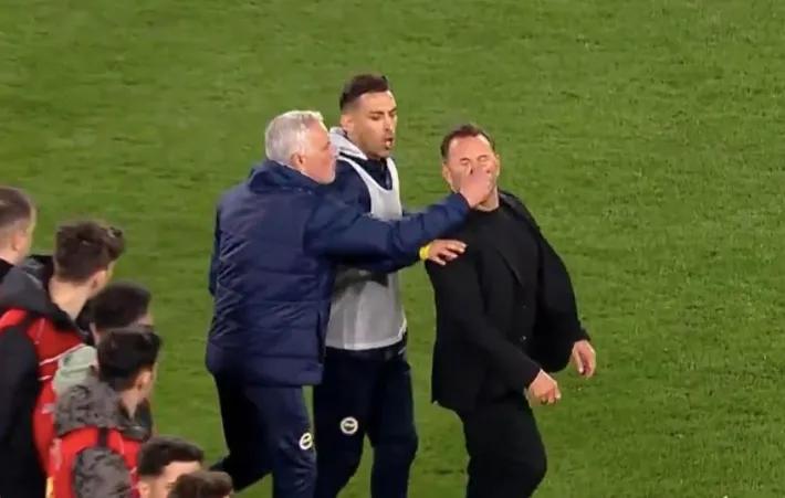 Jose Mourinho appears to grab Galatasaray manager Okan Buruk after Turkish Cup loss