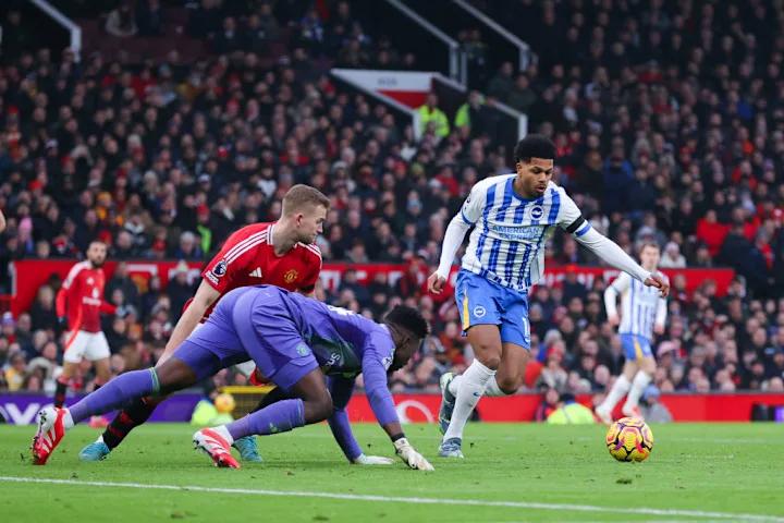 Manchester United suffered a disappointing 3-1 defeat against Brighton & Hove Albion at Old Trafford on Sunday, as the visitors’ Yankuba Minteh stole the show with a goal and an assist. United’s woes were compounded by a critical mistake from goalkeeper Andre Onana that gifted Brighton their third goal.
