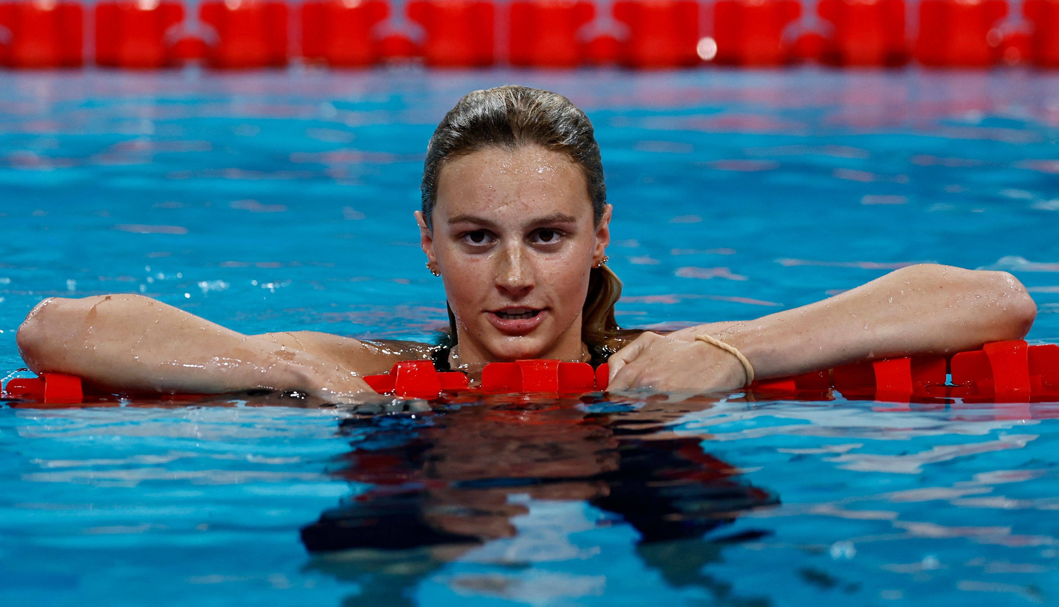 During the first final of an exhilarating evening at the La Defense pool, which featured five gold medals at stake, McIntosh took an early lead, consistently distancing herself from Grimes at each split, ultimately finishing nearly six seconds ahead of her closest competitor.
