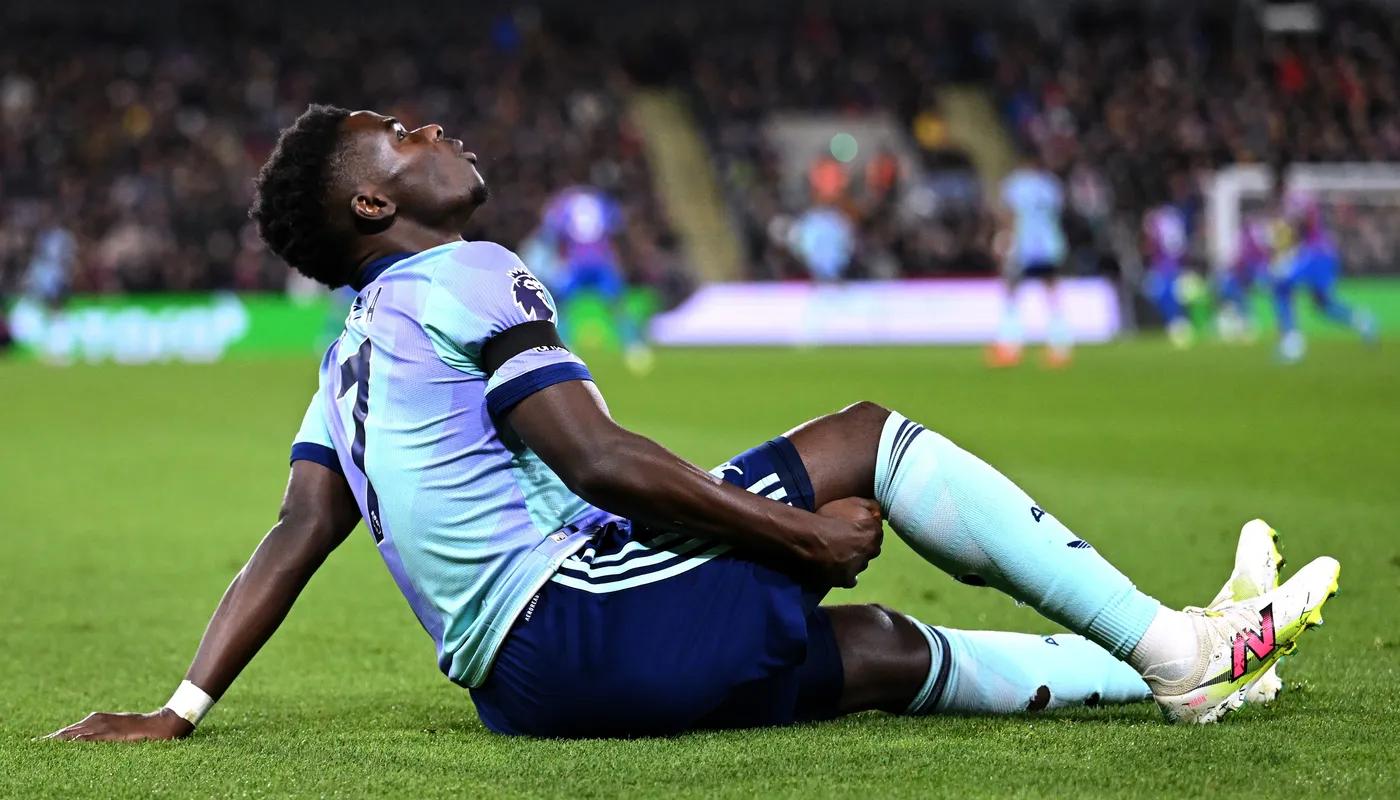 This season, Saka has contributed significantly to Arsenal's campaign, netting five goals and providing ten assists, which has helped the team secure third place in the league standings. He was substituted in the 22nd minute of the match against Crystal Palace and was seen leaving the stadium on crutches.