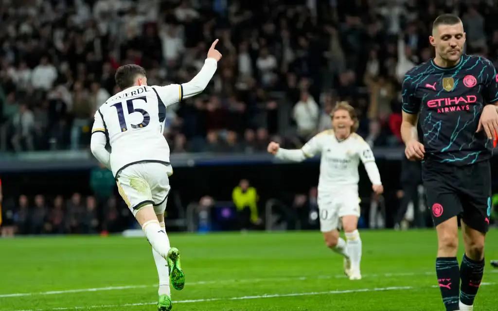 The intense pace continued as Real Madrid quickly responded, with Eduardo Camavinga's shot deflecting off Ruben Dias to deceive Stefan Ortega.