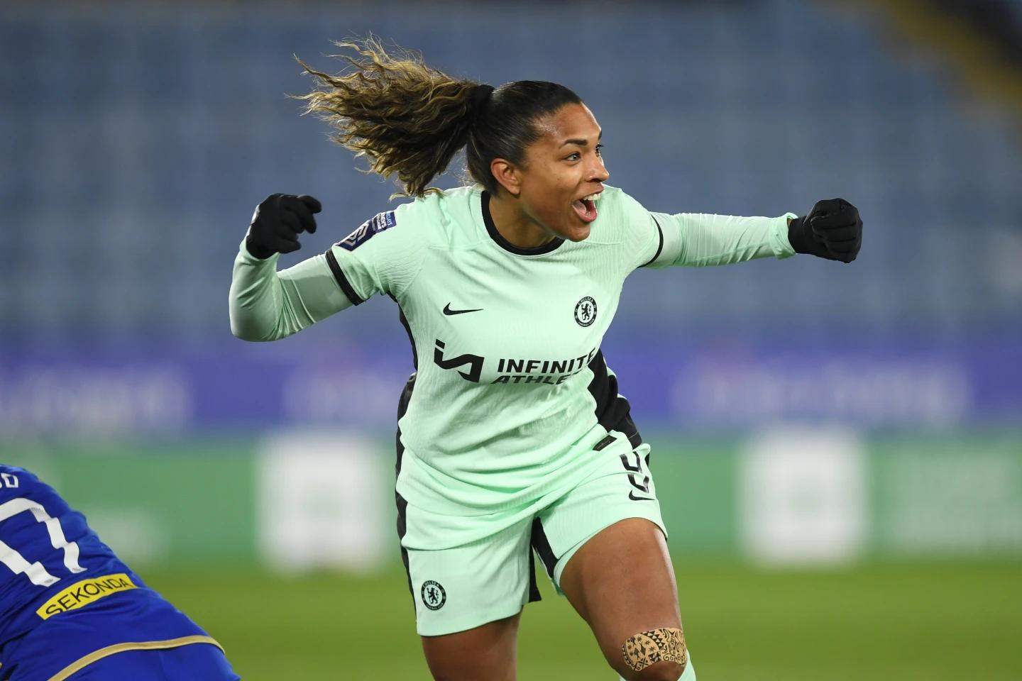 Winger Johanna Rytting Kaneryd added a third, and Brazil-born USA international Macario scored on her debut as Chelsea reclaimed first place on 37 points, three goals ahead of Manchester City, who defeated Everton 2-1 on Saturday.