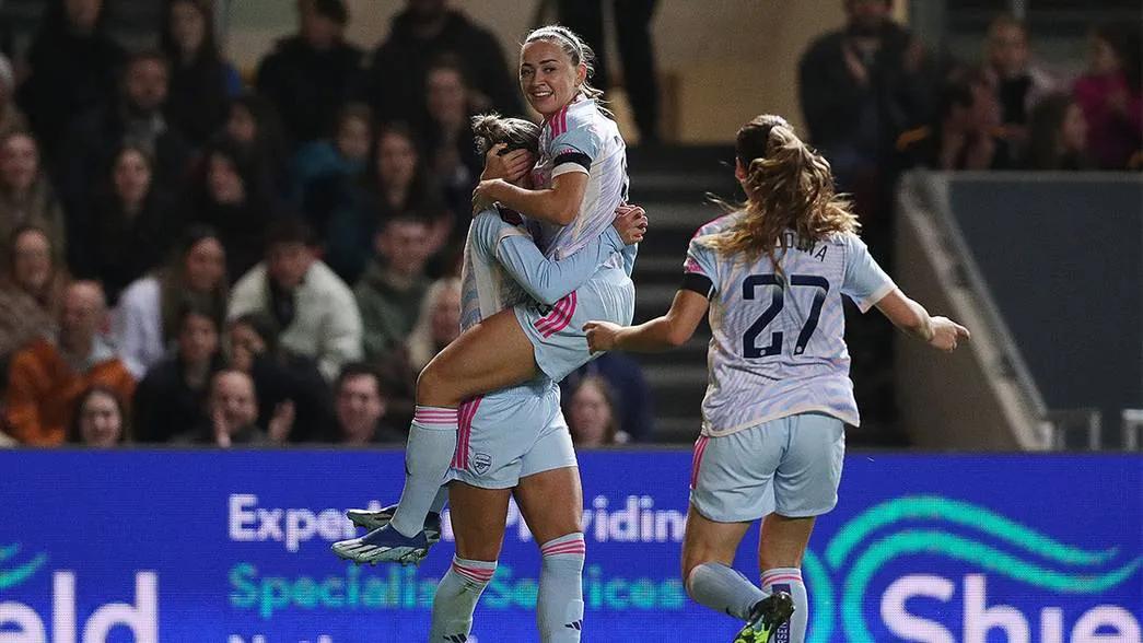 WSL: Katie McCabe double secures Arsenal's victory in front of a record Robins crowd.
